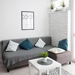 Rentplanet - Apartamenty Chlodna dysponuje miejscem do siedzenia z sofą oraz nowoczesnymi udogodnieniami, takimi jak telewizja satelitarna. W łazience są oddzielna toaleta, wanna i prysznic, suszarka do włosów i ręczniki.